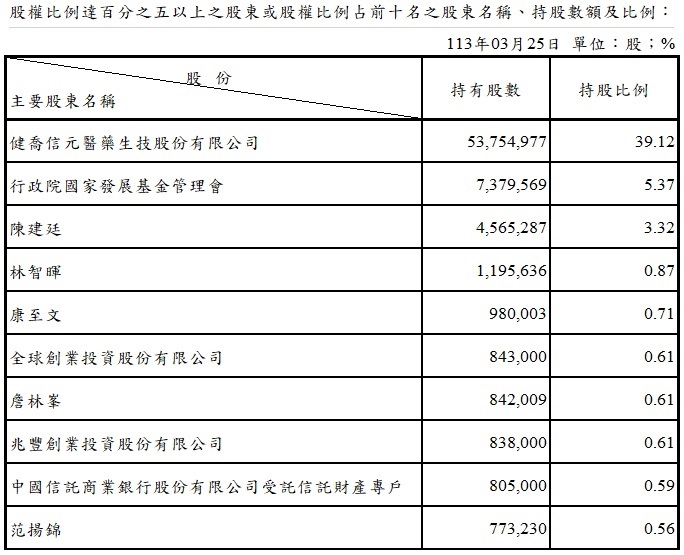 主要股東名單